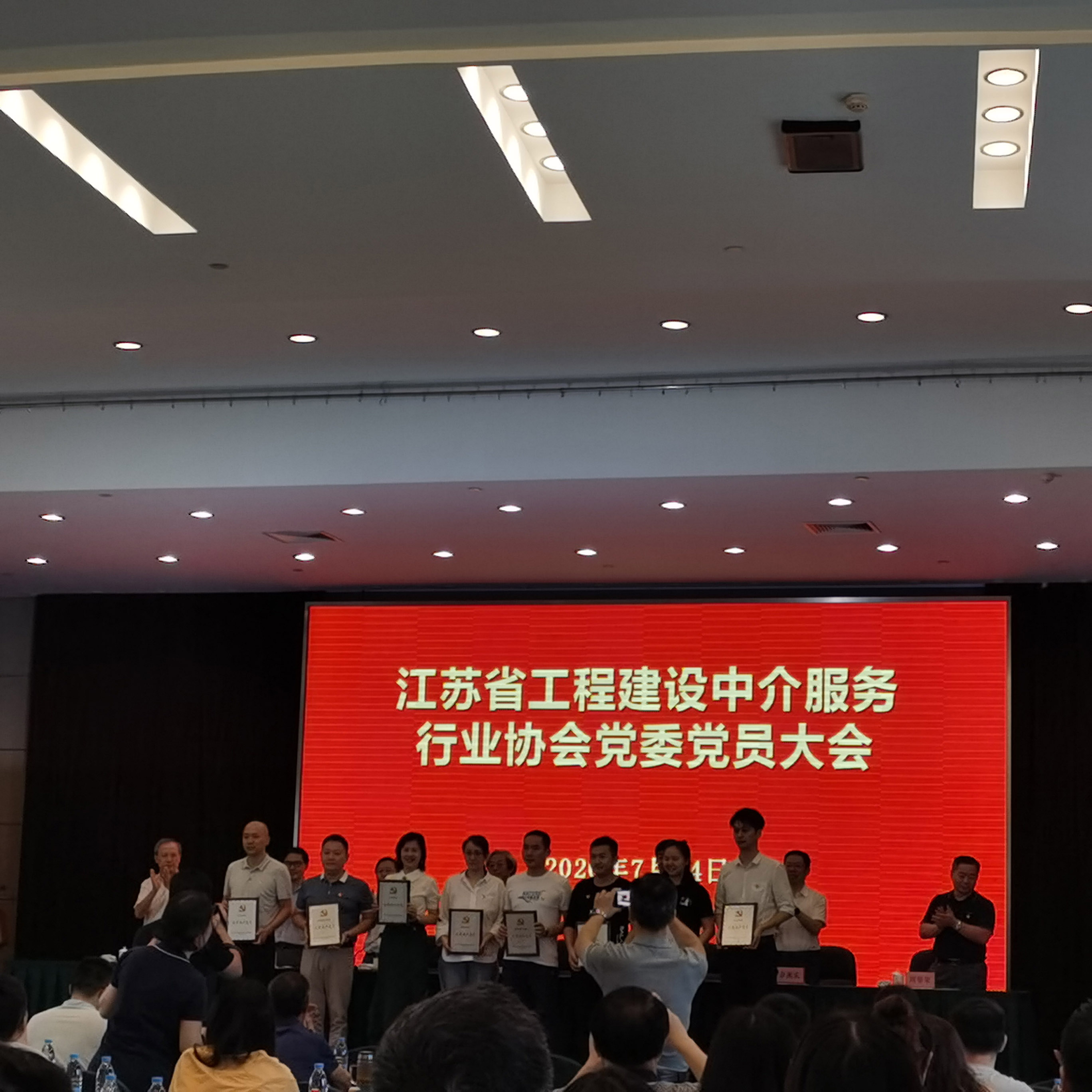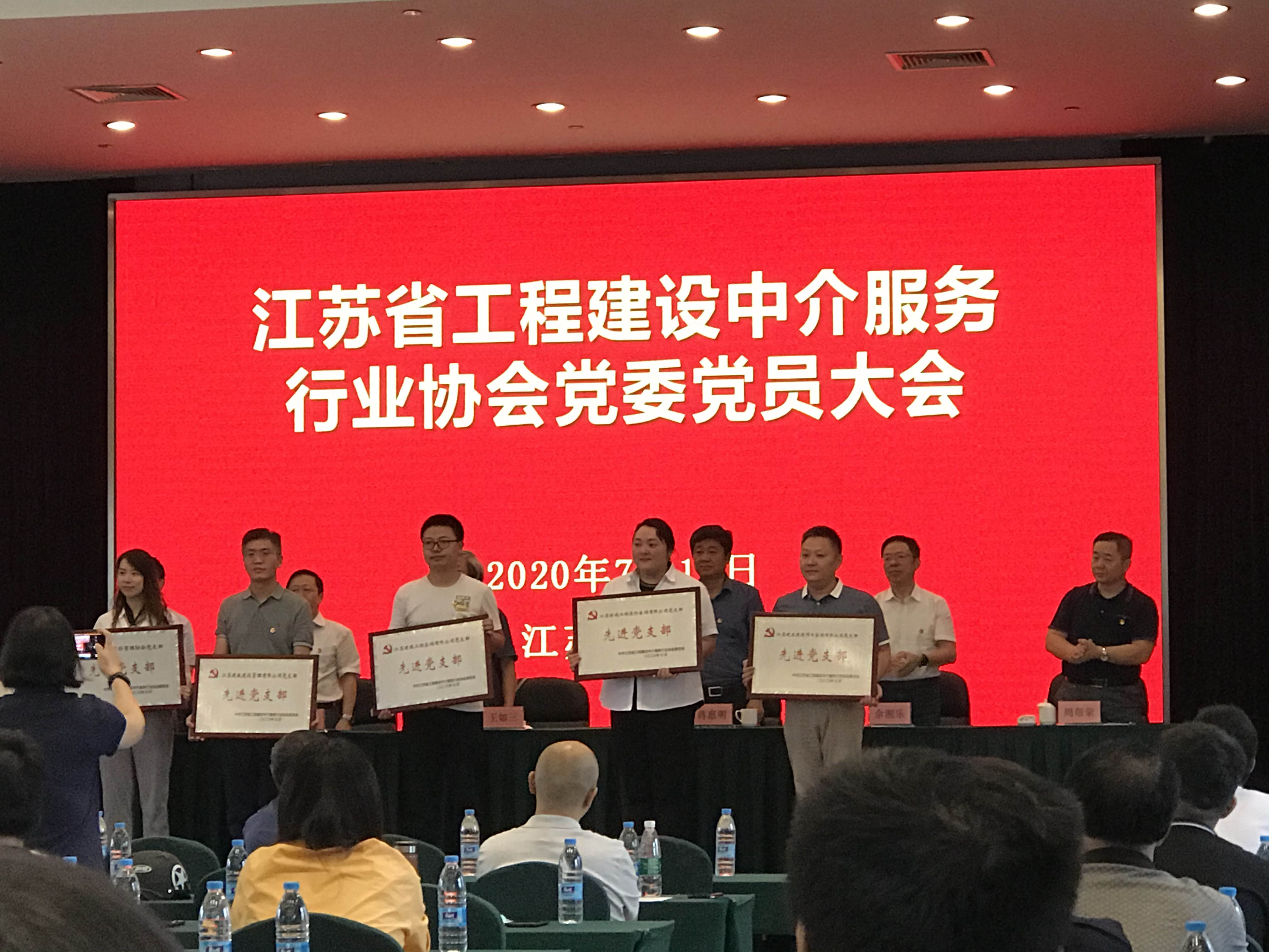 2020年7月14日,江蘇省工程建設(shè)中介服務(wù)行業(yè)協(xié)會(huì)黨委隆重召開(kāi)了黨員大會(huì),我公司黨支部被授予“先進(jìn)黨支部”稱號(hào),張慶明、吳建東、周海璞、周榮等四位同志被授予“優(yōu)秀共產(chǎn)黨員”稱號(hào),公司支委委員周海璞同志上臺(tái)領(lǐng)取獎(jiǎng)牌,并代表黨支部發(fā)言。