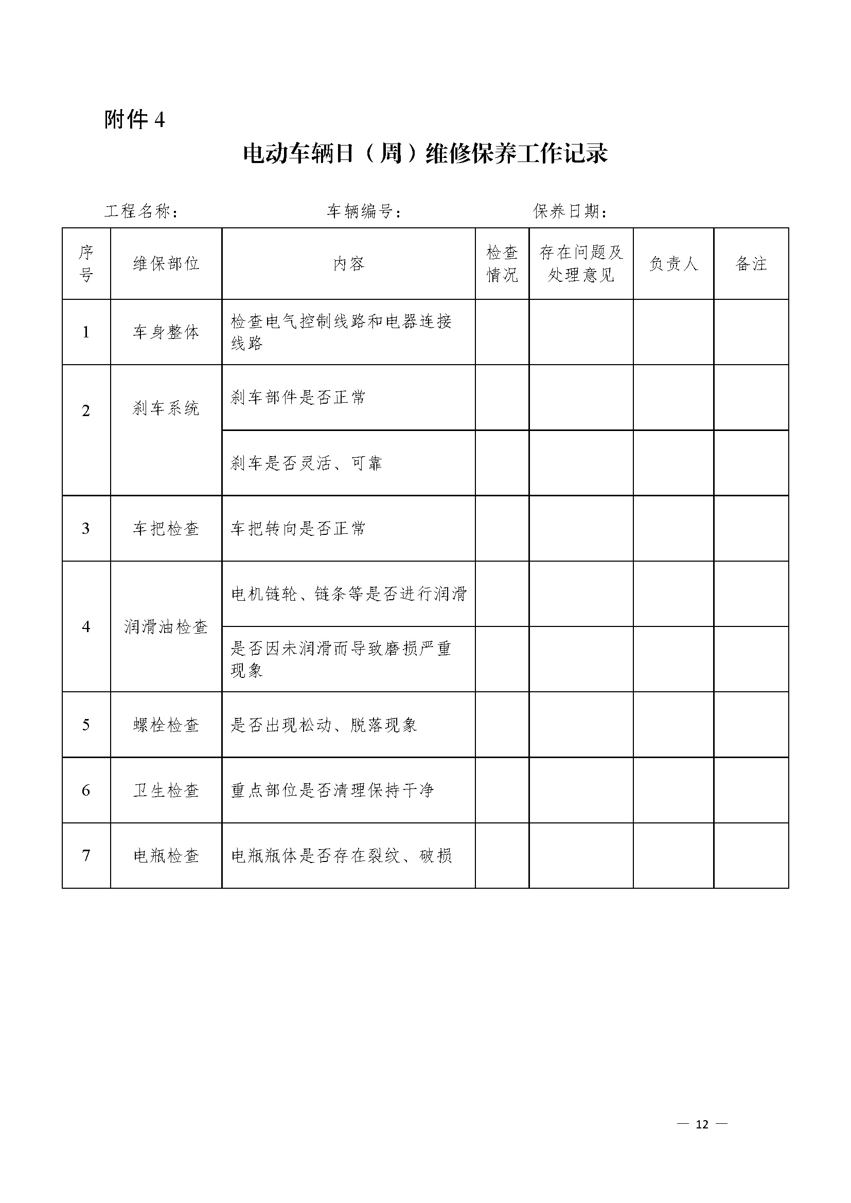 4.電動(dòng)車(chē)輛日(周)維修保養(yǎng)工作記錄