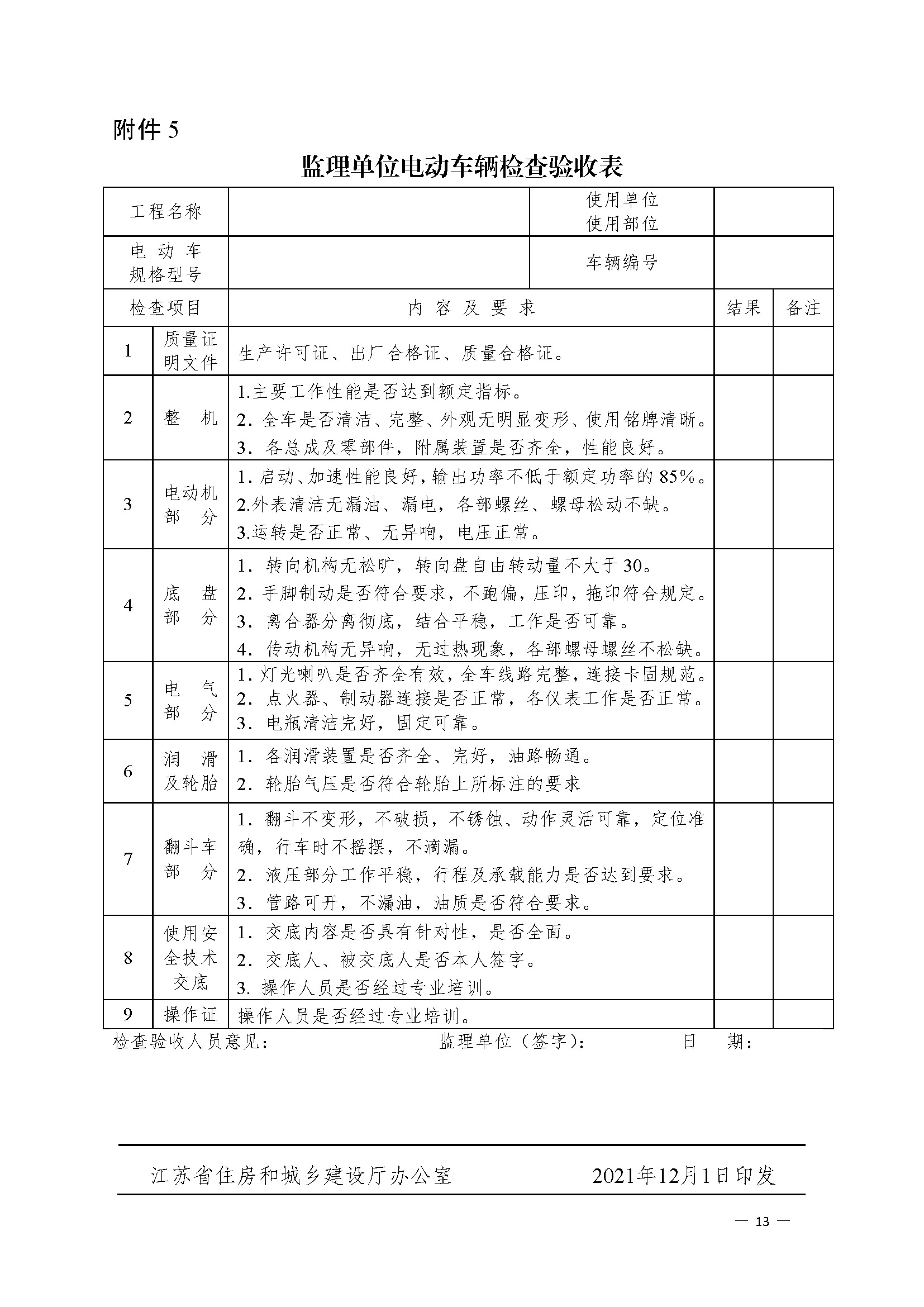 (六)監(jiān)理單位應(yīng)對(duì)施工現(xiàn)場(chǎng)電動(dòng)車(chē)輛使用情況進(jìn)行抽查并進(jìn)行記錄(附件5),發(fā)現(xiàn)存在生產(chǎn)安全事故隱患的,應(yīng)要求施工單位限期整改、整改合格后方可使用。
